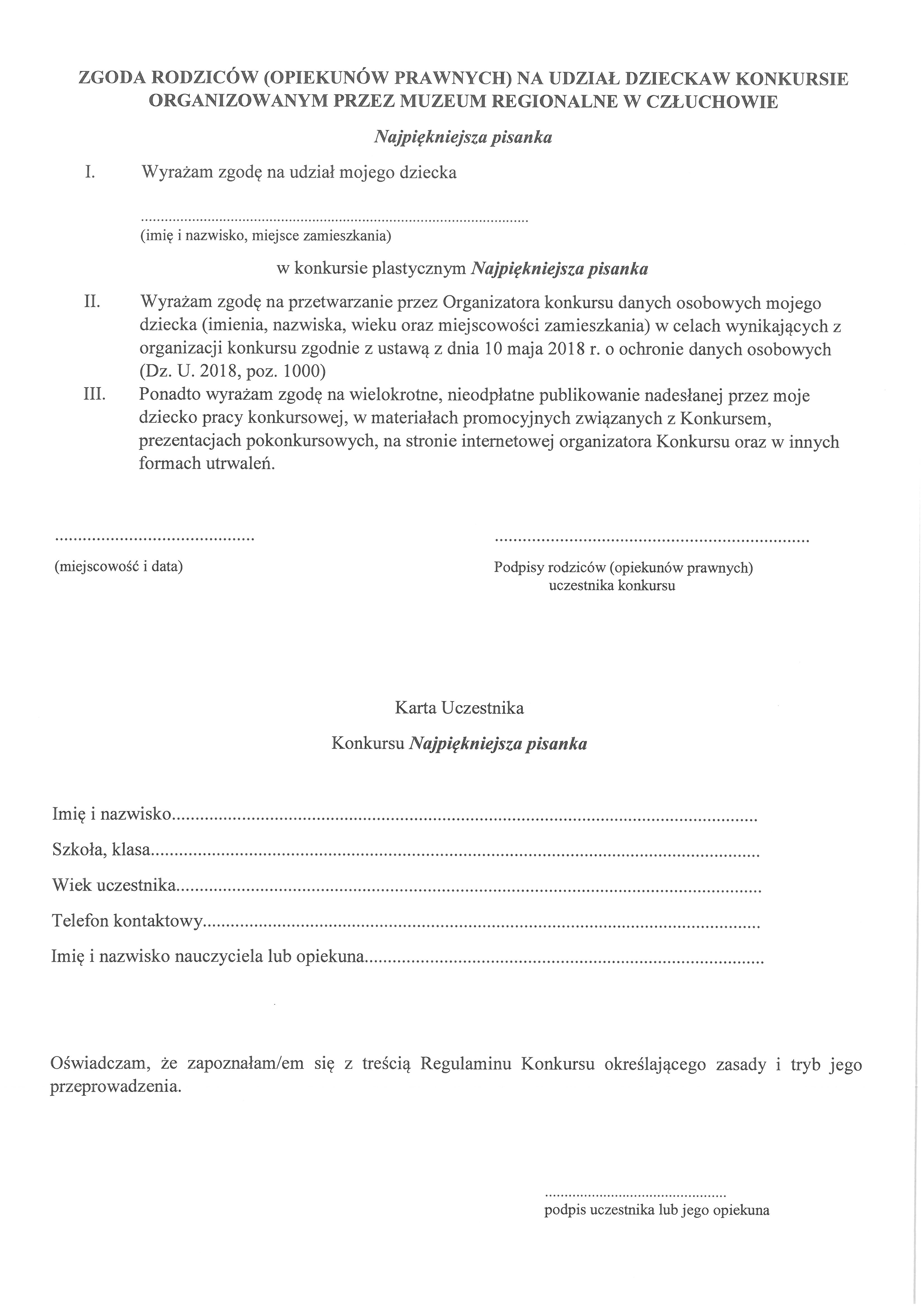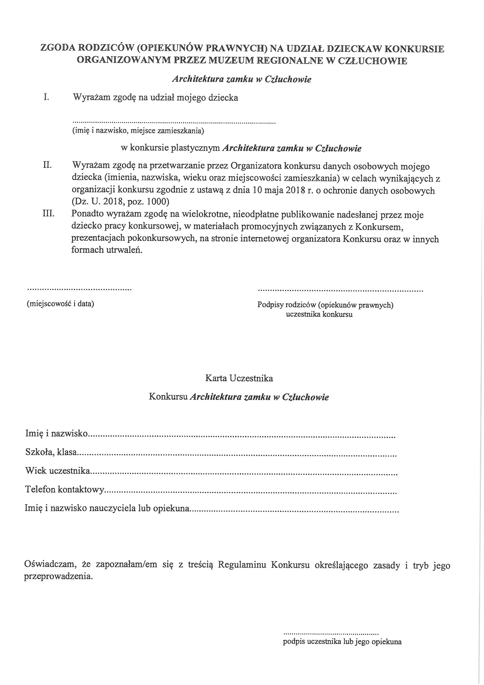 Karta Uczestnika, zgoda rodziców, opiekunów prawnych