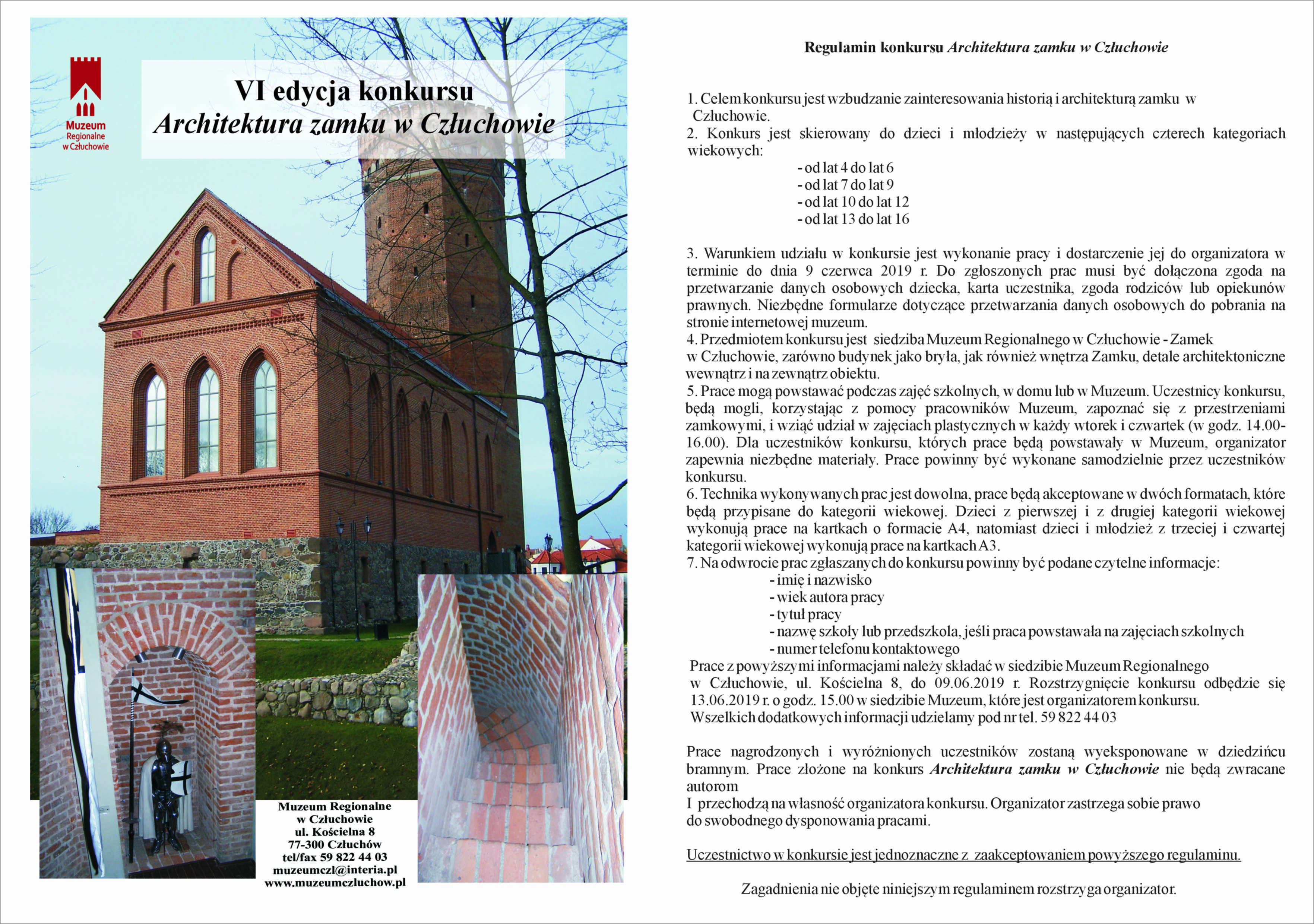 Zapraszamy dzieci i młodzież w wieku od 4 do 16 lat, do udziału w kolejnej, VI edycji konkursu plastycznego Architektura zamku w Człuchowie.
