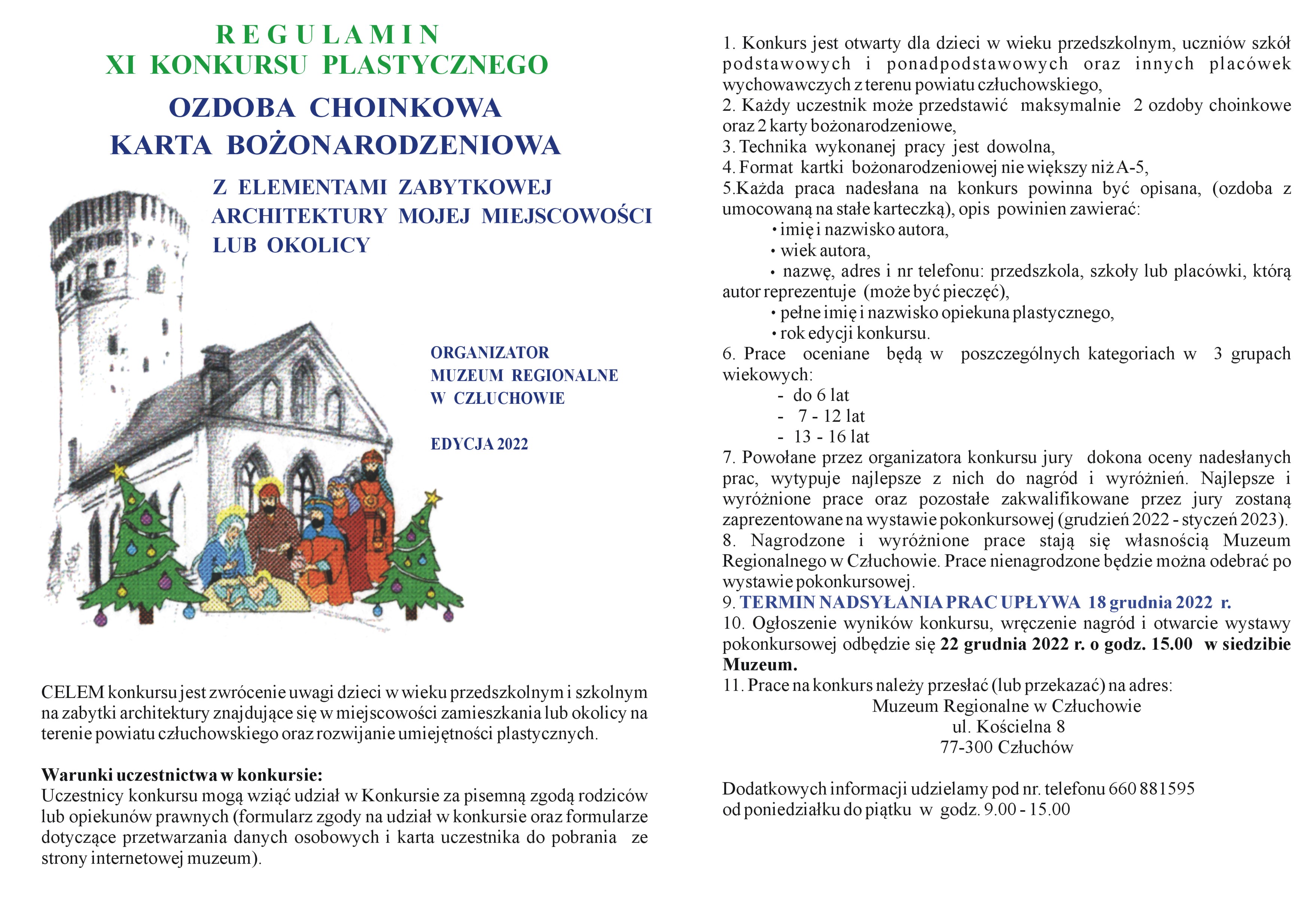 Zapraszamy dzieci i młodzież do udziału w XI edycji konkursu plastycznego Ozdoba choinkowa, karta bożonarodzeniowa z elementami zabytkowej architektury mojej miejscowości lub okolicy.