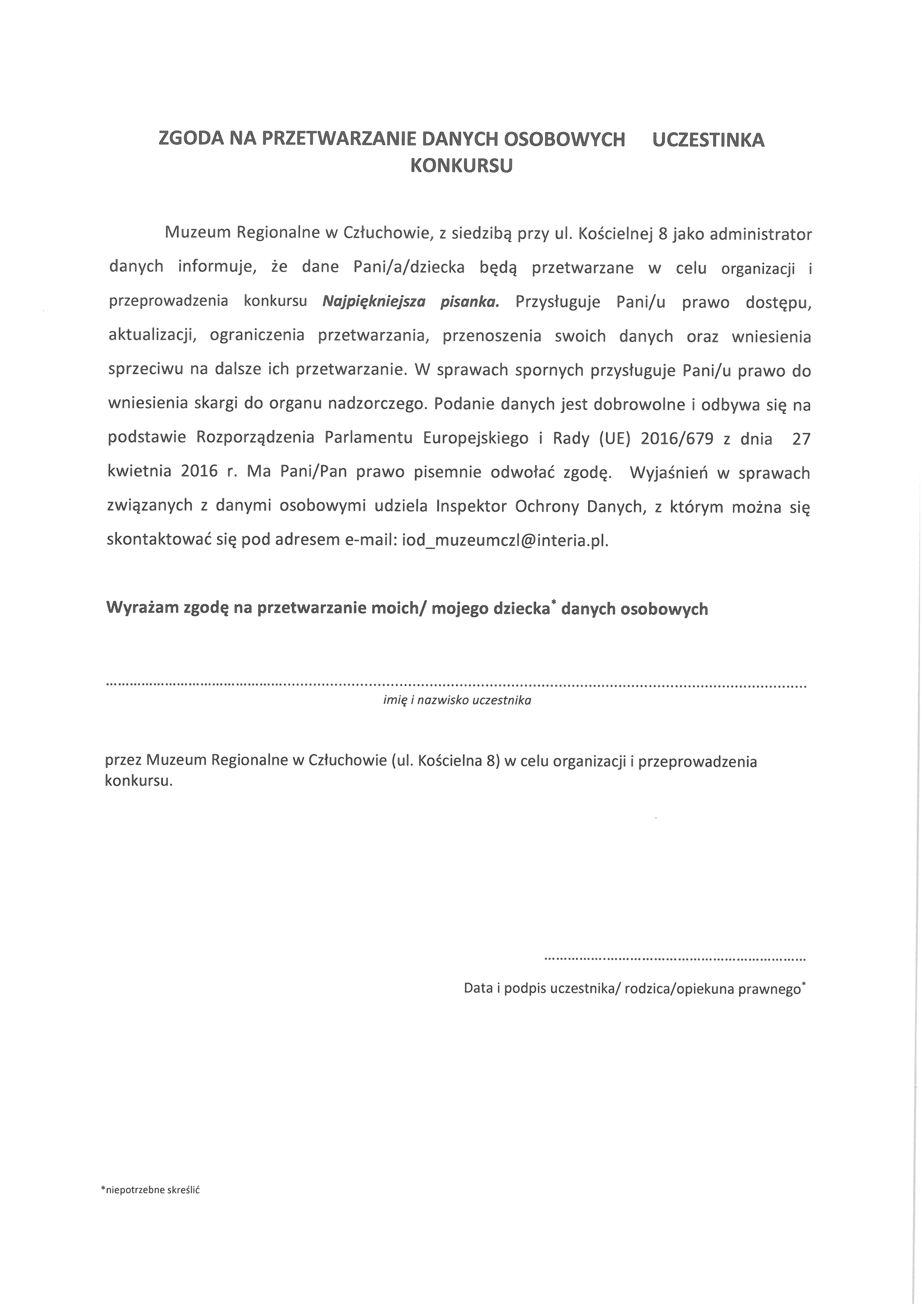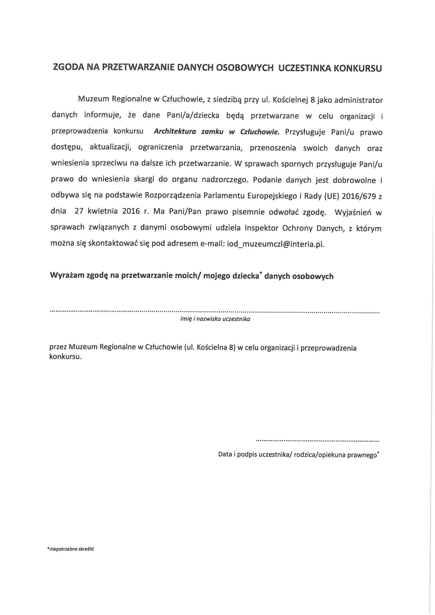 Karta Uczestnika, zgoda rodziców, opiekunów prawnych