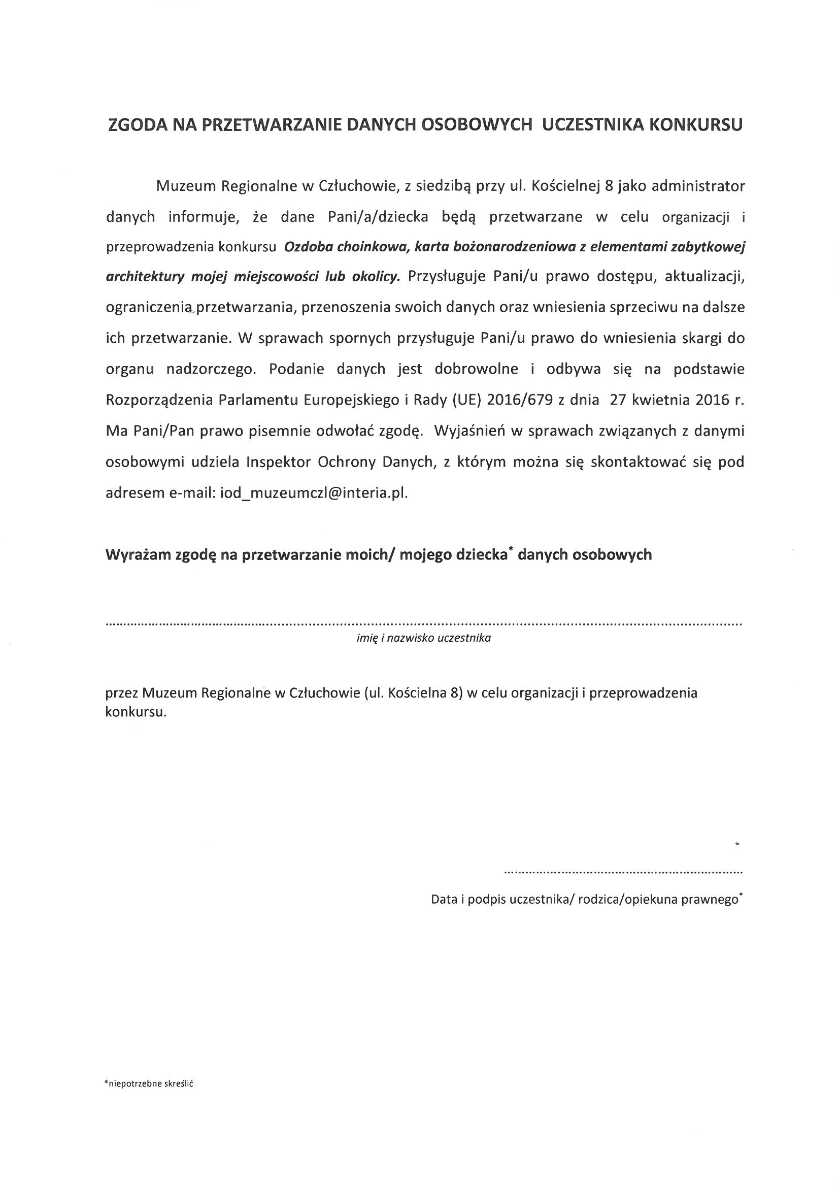 Zgoda na przetwarzanie danych osobowych