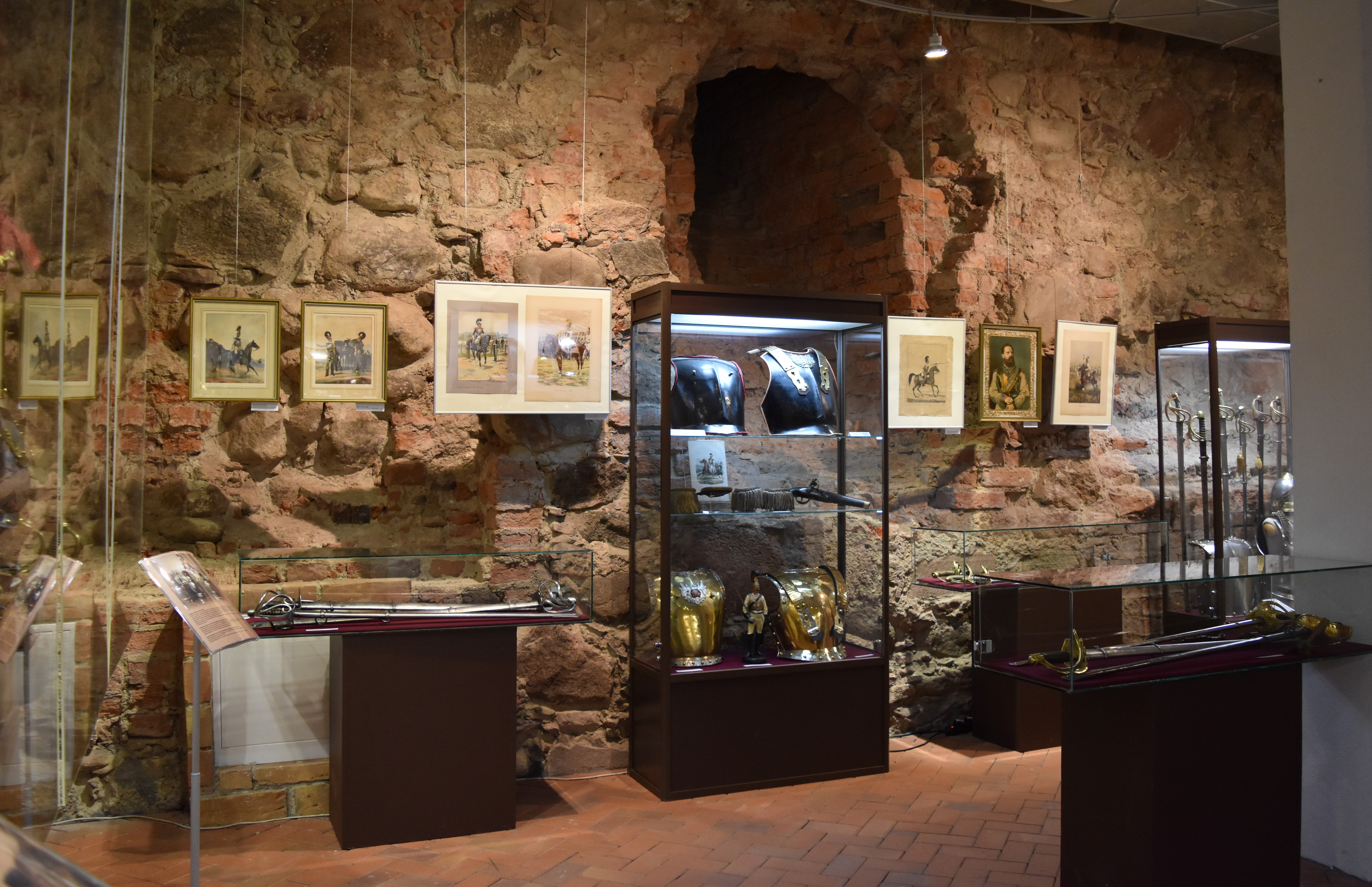 Prezentowane na wystawie obiekty pochodzą przede wszystkim z XIX wieku. Wśród nich znajduje się kilkanaście charakterystycznych pancerzy – kirysów - od których pochodzi nazwa formacji. Eksponowane uzbrojenie ochronne kirasjera obejmuje również hełmy zakończone typowym dla kirasjerów grzebieniem z włosia końskiego. Nieodzownym elementem uzbrojenia kirasjerskiego oprócz pistoletów były pałasze, których różnorodne wzory można zobaczyć na ekspozycji.